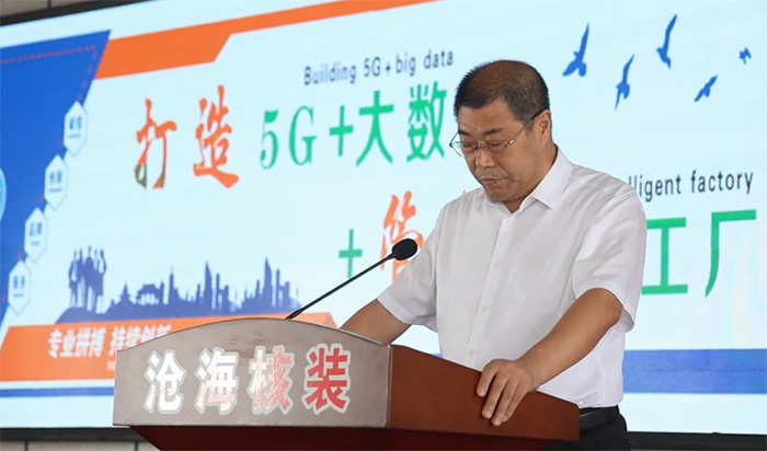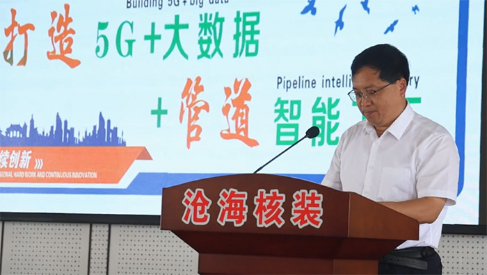 潘佳庭在致辭時指出,近年來,鹽山縣圍繞產(chǎn)業(yè)轉(zhuǎn)型升級,加快智能化生產(chǎn)管理進(jìn)程,努力推進(jìn)管道裝備產(chǎn)業(yè)向數(shù)字化轉(zhuǎn)型和智能化提升,實現(xiàn)管道裝備產(chǎn)業(yè)智能制造、智慧運(yùn)行。滄海核裝備科技股份有限公司作為我縣高 端管道制造企業(yè),積極響應(yīng)政府號召,與國內(nèi)知名科研院所和運(yùn)營商合作,謀劃了“5G+大數(shù)據(jù)+管道智能工廠”項目,該項目的實施將進(jìn)一步加快推動全縣工業(yè)轉(zhuǎn)型升級步伐,為鹽山經(jīng)濟(jì)社會高質(zhì)量發(fā)展注入新的活力。